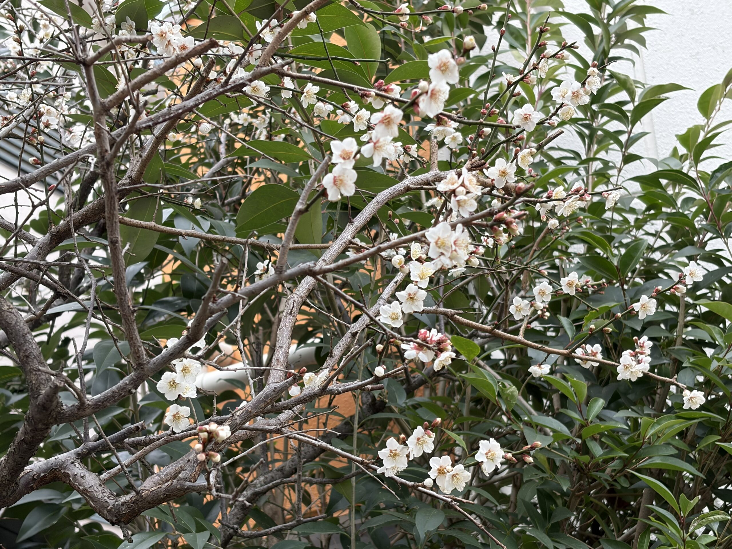 金子建設事務所の駐車場に梅の木が1本あります。